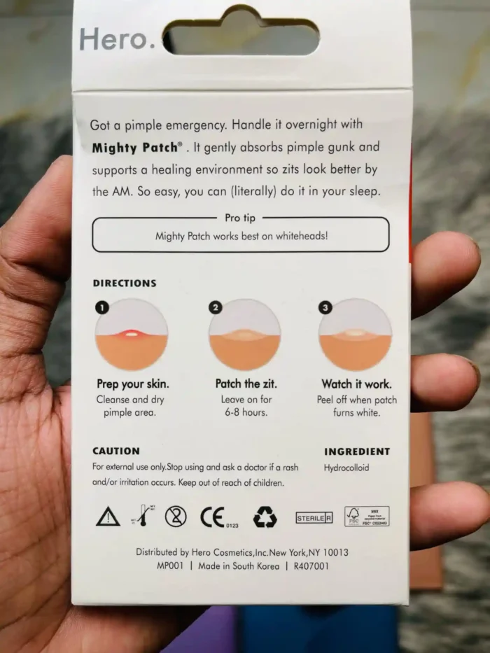 মাইটি প্যাচ এমন একটি অসাধারণ পণ্য যা পিম্পল দূর করতে বিপ্লব ঘটিয়েছে। নিউইয়র্কের বিখ্যাত “Hero Cosmetics” দ্বারা ডিস্ট্রিবিউটেড এবং মেড ইন কোরিয়া, এই প্যাচটি বিশ্বমানের প্রযুক্তি এবং সেরা মানের নিশ্চয়তা দেয়। এটি আমেরিকান ডার্মাটোলজিস্টদের দ্বারা পরীক্ষিত, যা এটিকে নিরাপদ ও কার্যকর করে তুলেছে।